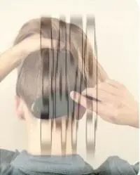 如果从侧面就开始削剪的话,会使头发流向前面,造成削剪过度