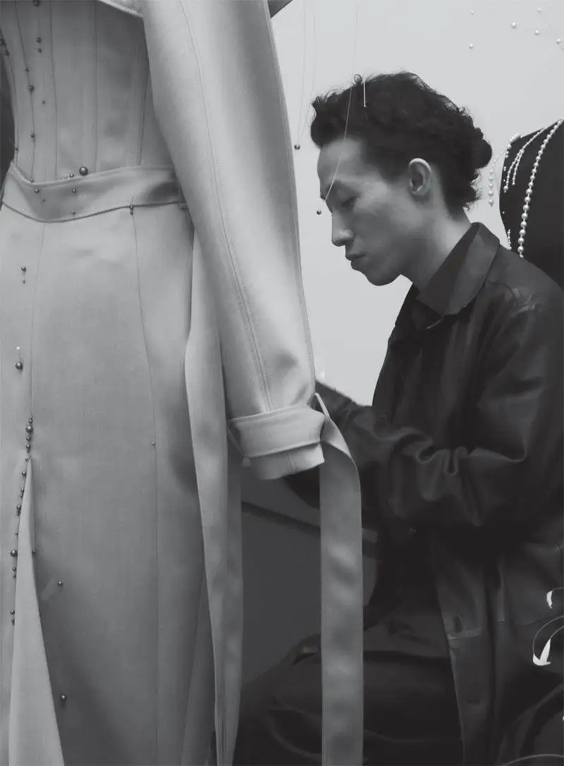 云惟骏对成为设计师的梦想持有朴素而直率地表达。“对于任何怀揣时装设计师梦想的人来说,这一志向皆是普遍且自然的。其动因,首要源自内心对创造的深切渴望;其次,则是对这种创造欲以服装设计为载体得以实现的迫切期待。我记忆中梦想萌芽的最初瞬间——是一个平凡无奇的午后,大概11岁的我,在沙龙里等待母亲打理发型的间隙,阳光恰好穿透玻璃窗,温柔地洒在一本翻开的杂志上,那些精致的时装大片仿佛被阳光赋予了灵魂。”他的眼神中流露出一抹追忆的神色,“那一刻,我仿佛能听见脉搏跳动的声音,一种难以言喻的触动直击心灵深处。那是我首次有意识地努力铭记某些事物,只因我已被那些作品深深吸引。这是我与时尚初遇的秋天,从此我自然而然地走上了这条道路。”