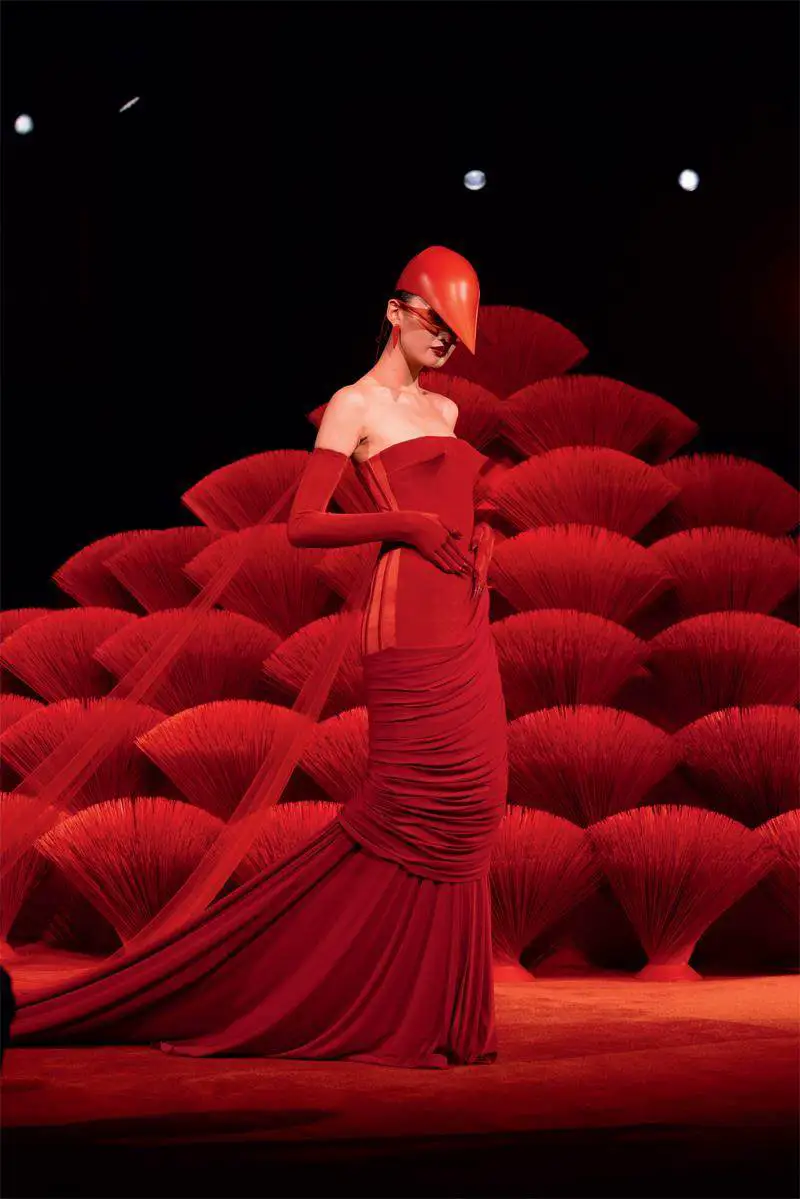 将视角转向本次香港时装秀,时间的流转成为云惟骏的灵感源泉。“我始终认为,以特定文化、城市或国家为灵感虽易引发共鸣,却也易陷入俗套。因此,我力求避免此种方式,转而追求更为个人化、情感化的表达。即便这样的创作初时难以被所有人理解,但其原创性与可能性却是无可比拟的。情感的力量,往往超越言语与表象。此次系列由12件新作与部分经典作品共同构成,这一创意混搭,不仅是对传统展示形式的勇敢挑战,更是在保持叙事连贯性的基础上,实现了新旧元素的和谐共生。我们也从音乐与电影中汲取灵感,这些伴随我成长的标志性形象,引发了对香港女性坚韧不拔精神的深刻反思。同时,我对祖母的个人回忆与家族情感也深深烙印在设计中,成为连接过去与未来的桥梁,让每一件作品都承载着厚重的历史感与温暖的情感共鸣。值得一提的是,与音乐家的跨界合作,为本场时装秀注入了独一无二的灵魂旋律。香港虽以其独特魅力著称,但更是全球文化版图中一颗璀璨的明珠,其故事超越了地域的界限,成了全世界共通的语言。因此,我们的创作不再局限于‘为香港而设计’,而是以更加开放包容的心态,编织出一个跨越国界、触动心灵的世界性故事。此番转变,不仅标志着我设计理念的一次深刻升华,更是我个人艺术旅程中的一次重要飞跃。在香港这片充满故事与传奇的土地上,我们以独特的视角与情感,讲述着属于自己的故事,同时也向世界传递着超越地域、文化与时间界限的共鸣与感动。”