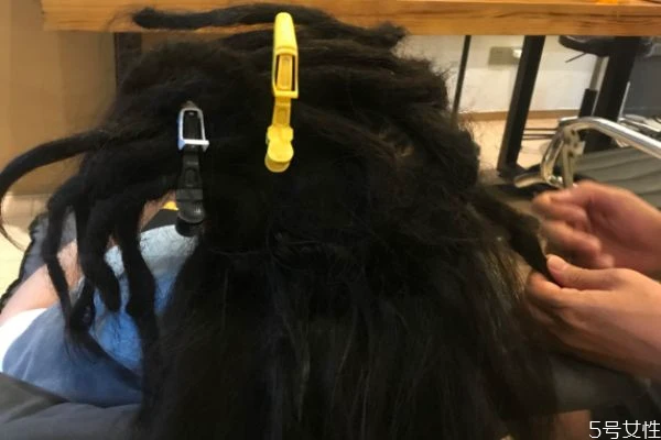 第三步、就是用尖尾梳把脏辫一点点的挑松。然后用钢梳并且配合喷壶不断地喷水,狠心将脏辫梳开。