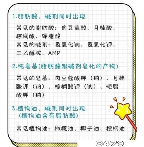 常见的皂基主要是脂肪酸类+碱类皂化形成的,常见的有酸:硬质酸、肉豆蔻酸、、月桂酸、棕榈酸、等等。很多手碱类物质:氢氧化钠、氢氧化钾、三乙醇胺。所以皂基的清洁力度很强,但一般对皮肤伤害也比较大,如果是油性皮肤会好点。
