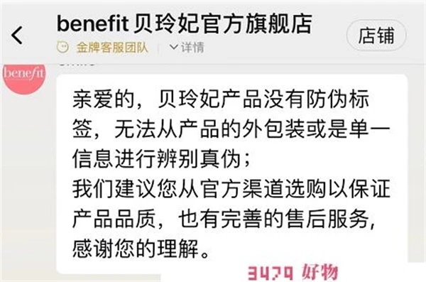 (截图来源benefit贝玲妃官方旗舰店客服回答)