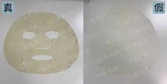 正品面膜纸的采用在外盒上有说明,用的是无纺布,假货面膜纸感觉用的是蚕丝面膜纸,比较薄,摸起来像是纸,上手后很轻易就能感受出来。