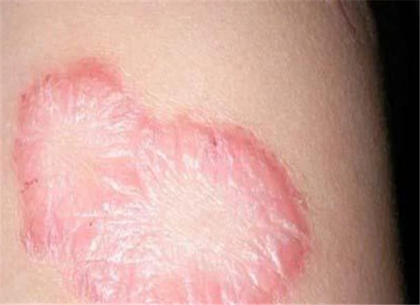 癣往往出现环状的红斑,边缘略隆起上覆盖细碎的鳞屑,多起水疱、脱皮。分布一般是扩散性外围密中间疏,有时甚至可以见到明显的红圈。