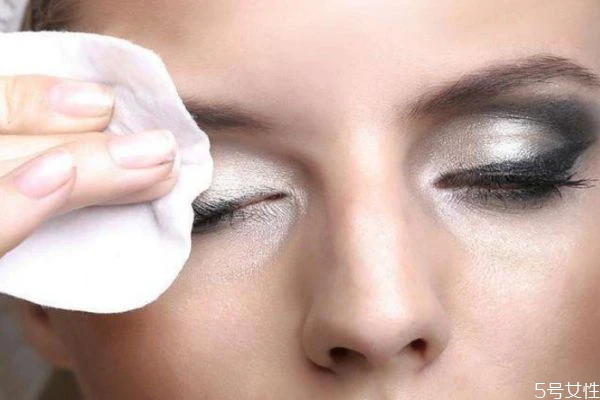 第二步:15秒后,横向朝外擦去眼妆,一次就能使大约70%的眼影和睫毛膏能脱落,注意一定要是横向擦去,因为这样会眼部肌肤的拉扯最小。