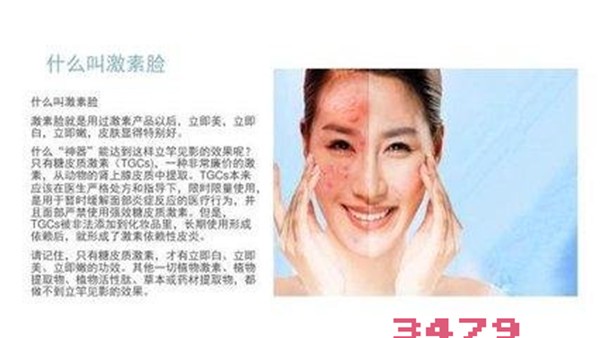 2、皮肤是否出现依赖性皮炎,当使用某款产品时,皮肤就会变得很好,一旦停止,脸上就会起红斑、瘙痒以及产生丘疹,如果有这种情况,那就说明之前使用的护肤品产品中可能含有激素。