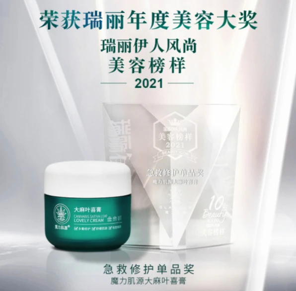 魔力肌源大麻叶喜膏荣获荣获《瑞丽》杂志2021美容榜“急救修复单品奖”