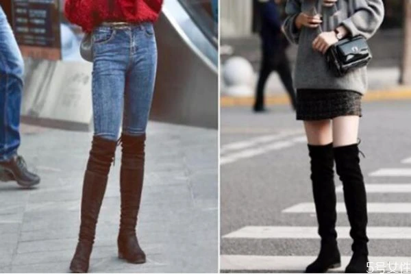 无论是穿裙子又或是裤子,都最好保证和靴子最高处保持5~10cm左右的距离,这一点点露肤度显出了委婉的性感,更主要的是隔断能在视觉上增加腿长。然后就是穿过膝靴的时候要秉持“上宽下紧”原则,以为这样的对比中会显得腿更细。