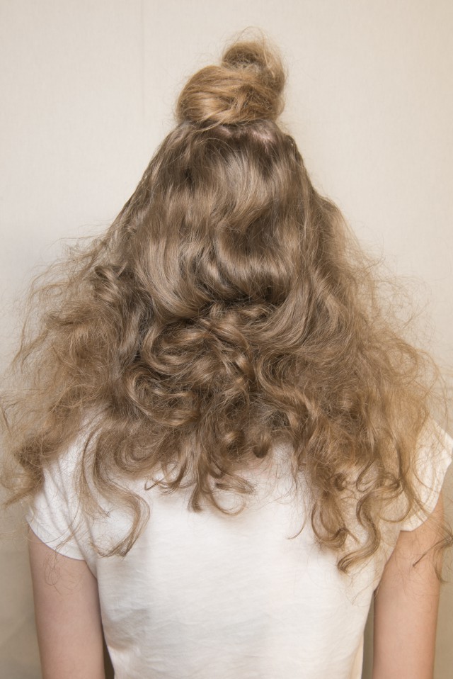 长发这样的长度是最适合扎个高高的丸子头的了,减龄显活力的丸子头也是长发妹子最爱扎的一款造型,只需要将下边的发丝绑到头顶上,再用橡皮筋盘好定住,那么就会显得相当可爱有青春的感觉。