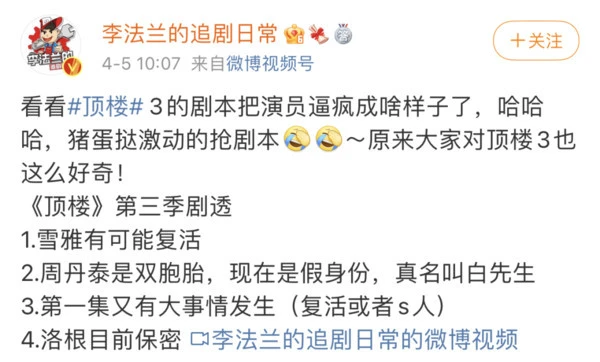 最近,让大家心心念的《顶楼三》终于来了,在第一时间等直播更新的蜜糖看完表示:还是熟悉的配方还是熟悉的感觉,够爽!