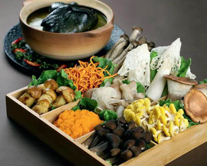 经典滇味汽锅鸡汤底中加入新鲜野生青头菌、腾冲雪鸡,以野生青头菌的清香融入雪鸡的丝丝甜香带来鲜美滋润的体验。