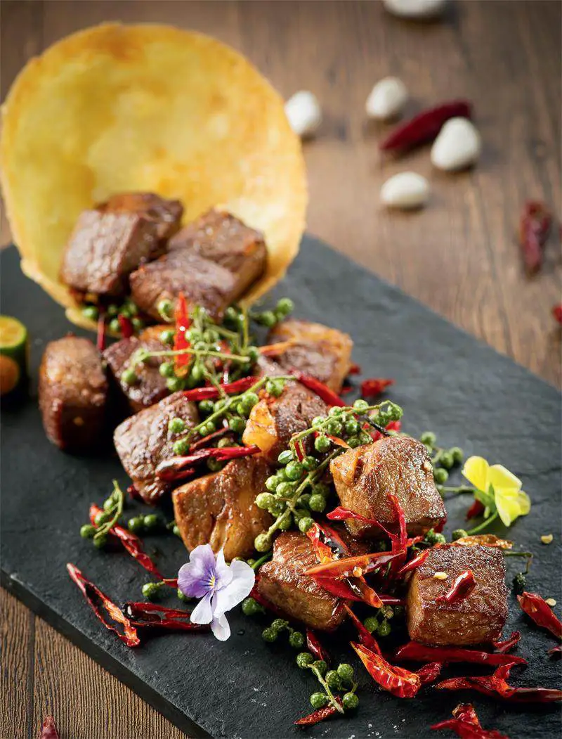 炭火烤制松茸,小火慢煎牛肉,淋上自制黑松露汁,松茸与牛肉双重演绎,感受多汁而饱满在口腔共舞的味觉快感。