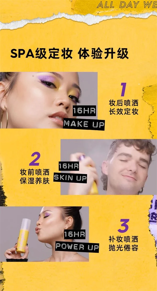 “保鲜大橘喷”继承了All Nighter长效定妆喷雾家族16小时的超长持妆效果,立体弹性成膜,防水防蹭不紧绷;微米粉末锁妆,打造裸光妆感的同时告别卡粉困扰。