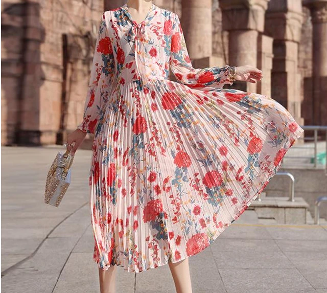 真丝碎花连衣裙,这种两件套的设计也是风格性非常的强,层次感很好,膝盖部位若隐若现,穿出成熟知性的风格。