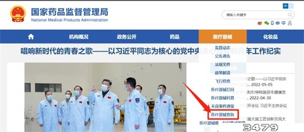 1、点击右方“医疗器械”一栏的“医疗器械查询”;