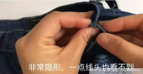 根据裤子的颜色选线,顺着它的纹理缝合,尽量让线不那么明显