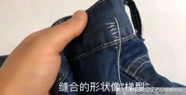 1、首先我们找到裤子侧面缝合处,第一针从缝合处从里挑出,第二针平行向上挑出