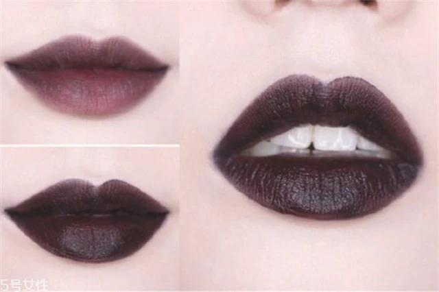 一看就知道这是个非日常色,像万圣节或者变妆party时还是很需要这样的一支唇釉的,喜好哥特风和欧美的女生们平时涂也完全OK,薄涂时隐约显出原本的唇色,反而更加显白了。