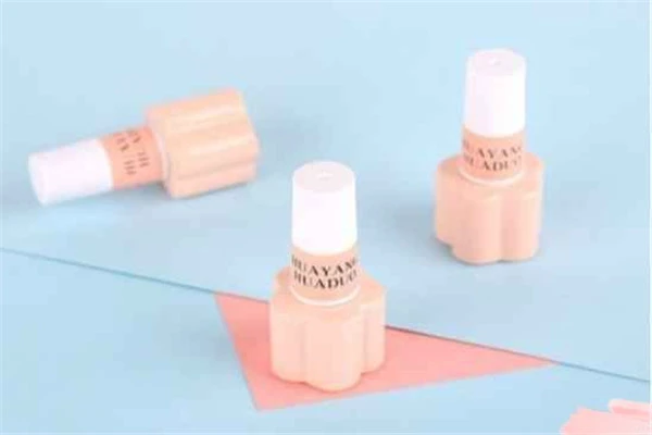 指甲油又称“指甲漆”、“甲油”。它主要成分为70%-80%的挥发性溶剂,15%左右的硝化纤维素,少量的油性溶剂、樟脑、钛白粉以及油溶颜料等。指甲油涂于指甲后,指甲油含有的溶剂挥发,形成有色的薄膜,然后这层薄膜附着在指甲上,具有适度着色的光泽,即可保护指甲,又赋予指甲一种美感。它是一种不需要照灯的,也称为自干型甲油~也因此指甲油一般会放在透明的瓶子里,保存的时候需要只需要密封好就可以了。但是,你知道吗?这种方便快捷的自干型甲油,并非理想的美甲材料呢,为了让指甲油容易干透,它所使用的溶剂主要有丙酮、乙酸乙酯、邻苯二甲酸酯、甲醛等。而这些溶剂挥发的时候被吸入到人体内会让人体感觉不适,长久吸入的话还会影响人体的健康;此外,指甲油由于渗透性强的原因,对于指甲比较脆弱的孩子可能会造成一些不好的后果,例如,太频繁用指甲油做指甲的孩子,指甲可能会发黄、没光泽,严重的还可能出现甲沟炎这些问题~所以做指甲油千万要注意不能沾到皮肤上去哦~不小心粘到了,要在干透之前用卸甲水擦干净。