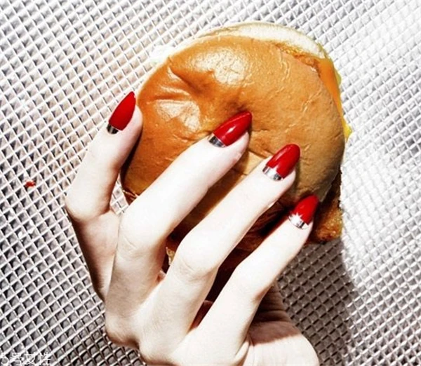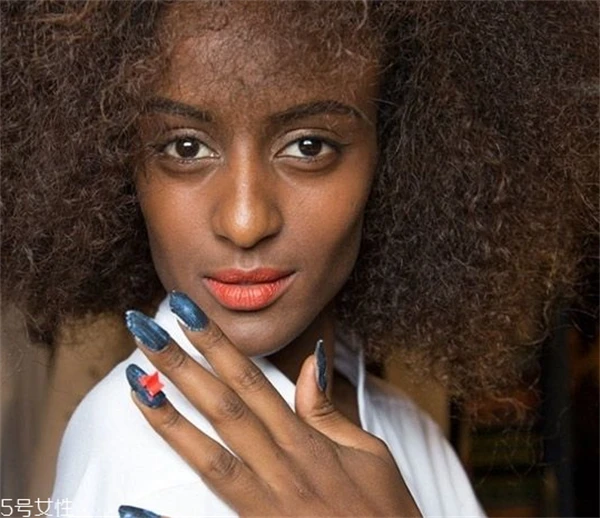 深色指甲,如果说整个甲面上全部都涂满,还不如只在指尖上涂上颜色或者弄出其他花样进行点缀效果会更佳。