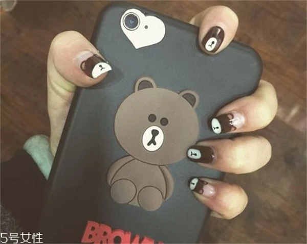 布朗熊和可妮兔作为line的吉祥物,深受不同国度的人喜欢,把可爱布朗熊和可妮兔的故事画在指甲上随身带着走吧!
