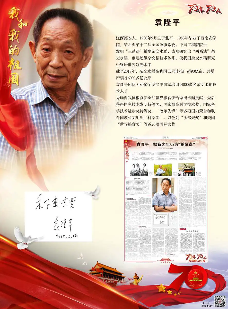 有为了“让杂交水稻造福老百姓、造福人类”奋斗一辈子的“共和国勋章”获得者袁隆平。上世纪60年代,当他开始探索杂交水稻之路时,是一所普通中等农校——安江农校的教师。袁隆平每天头顶烈日、脚踩水田,行走在千千万万株稻穗间,终于创建了超级杂交稻技术体系,为我国粮食安全、农业科学发展和世界粮食供给作出杰出贡献。