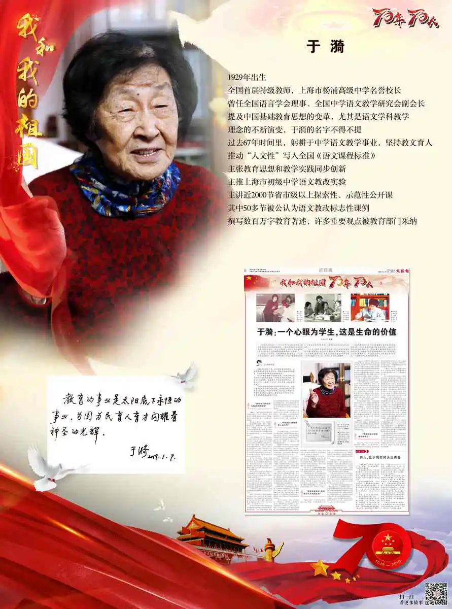 他们之中,有“人民艺术家”王蒙、秦怡、郭兰英,他们的文字、他们塑造的形象、他们的歌声,都深深打动、激励了我们,在我们生命里刻下年轮一般的记忆。还有长期躬耕于中学语文教学事业,为推动全国基础教育改革发展作出突出贡献,获得“人民教育家”称号的于漪;还有在平凡岗位上、甚至“冷门”专业里,兢兢业业几十年,埋头苦干一辈子,为中华文化的传承、创新作出杰出贡献的教师、专家和学者……