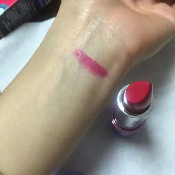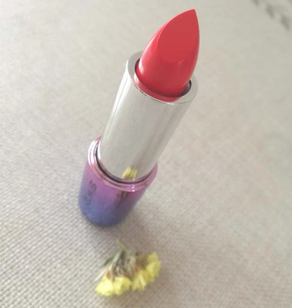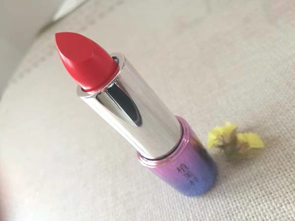 植美村口红的外形很漂亮,紫蓝色加粉红色的荧光效果,是很吸引人的颜色,外表看起来很有女人味,紫蓝色和粉红色的搭配颜色很耀眼。