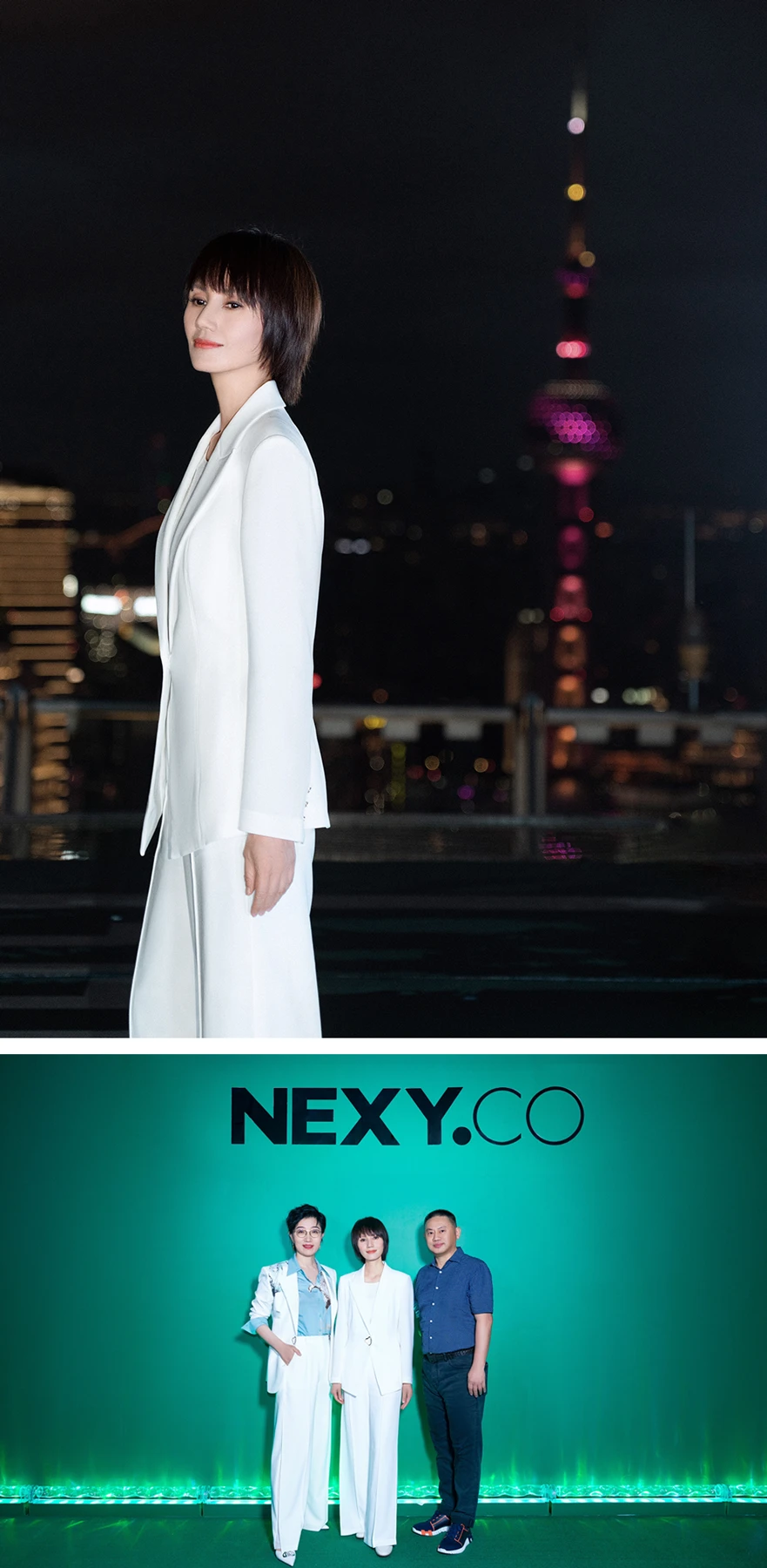 代言人袁泉身穿NEXY.CO白色西装套装,知性干练,与媒体和蔻lady们亲切互动,更与赢家时尚集团董事局主席金明先生、NEXY.CO事业部总经理Olivia共同为大秀启幕并祝词。