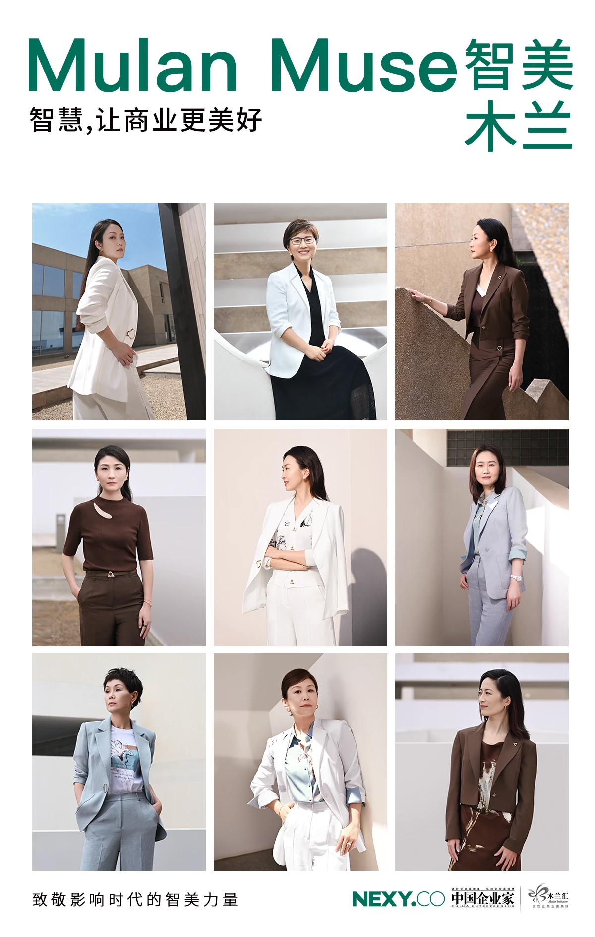本届7.18品牌日,NEXY.CO携手《中国企业家》共同邀请来自不同行业、不同领域的9位商界木兰领袖,分享对“木兰精神”的独到见解,呈现当代女性智美双全的风貌。
