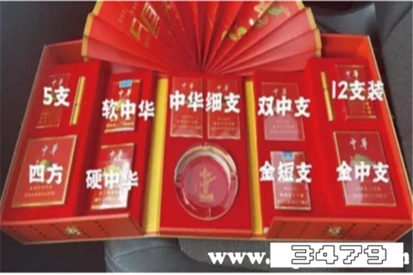 中华大国荣耀香烟礼盒,当然里面放的是中华香烟,而且还不是一种中华香烟,里面包含了软中华、硬中华、中华细支、双中支、盒短支、盒中支,以及四方还有五支和十二支等多个种类,可以说是现在比较有档次的中华烟草大合集。而且礼盒里面还有中国风的扇子以及印有中华华表的烟灰缸。