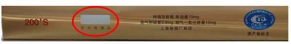 1、条盒:找到中华双中支条盒侧面的电子变轨防伪涂层,然后刮擦后,如果颜色没有发生变化,说明有较大的可能性说明你买到的是假烟;如果呈现蓝色,静待一段时间后会褪去,说明你买到的真烟可能性比较大。如图所示: