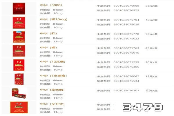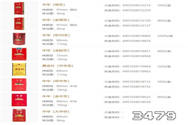 7、中华(金中支),这个烟是比较贵的,一包价格在85元左右。