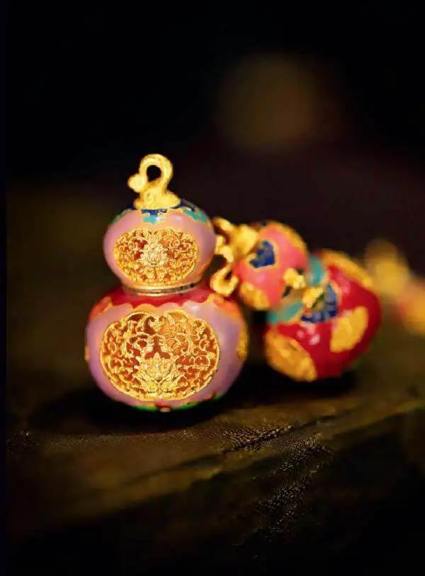 首先是花丝镶嵌,它被誉为“燕京八绝”之一。想象一下,黄金被拉成细如发丝的线条,匠人们用指尖轻轻掐、填、攒、焊,仿佛在编织一首古老的诗歌。再点缀上珍珠、宝石,令整件作品带着华贵与复古的气息,静静地诉说着过去的故事。