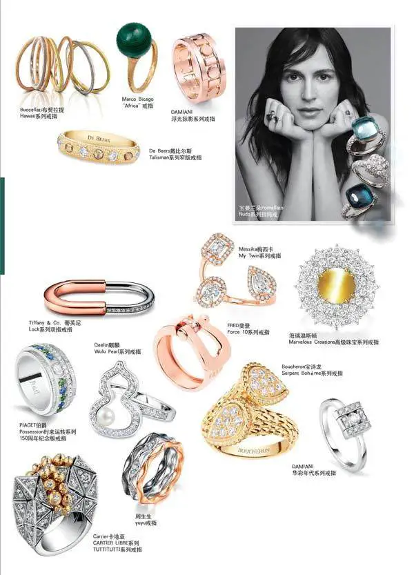 1.可以选择具有相似设计元素或风格的戒指进行搭配,例如将不同粗细的圆环、植物图案组合在一起。戒指的色系应尽量统一,如果戒指上有宝石点缀,宝石的色泽和质地也应保持一致,避免显得杂乱无章。