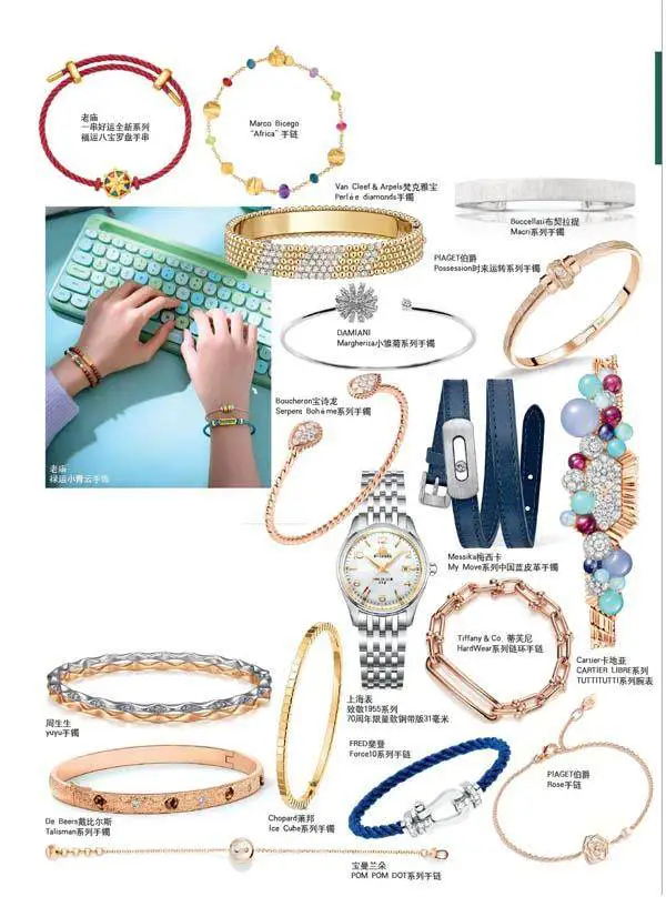1.手链叠戴时,建议选择同色系的款式,营造统一而精致的效果。通常建议选择两种款式进行叠戴,既能展现精致感,又不会显得过于繁复。