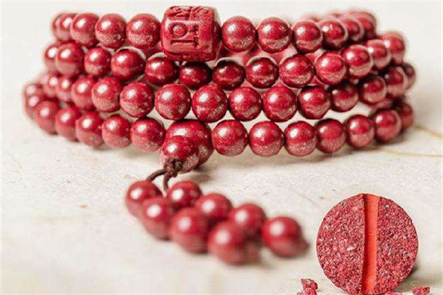 朱砂可以用于装饰,朱砂外观华贵、大气,女性朋友将朱砂饰品戴在身上可以给自身增添华贵、迷人的气质。此外朱砂色泽喜庆、迷人,视觉上可以让人的情绪变得愉悦、放松。平时佩戴朱砂饰品可以不断和皮肤摩擦,摩擦的同时也是在物理按摩。