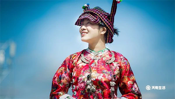 女子戴黑头巾,着藏青或深蓝色短领右衽偏襟上衣,有的在颈口、袖口、襟底均绣有彩色花边。有一暗兜藏于腹前襟内,随襟边缝置数对布结纽扣。下穿宽肥黑裤,也有的于裤脚沿口镶二道异色彩条腰扎围裙。劳动时穿草鞋,并戴垫肩。在赶圩、歌场或节日穿绣花鞋。