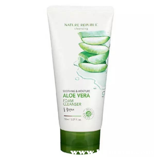 自然共和国芦荟舒缓保湿泡沫洁面乳:和名字一样里面富含有大量的芦荟精华成分在里面,所以其整体质地和配方都是非常温和的,通过非常简单的方式对面部肌肤进行清洁,丰富的泡沫不但是能够去除污垢、油脂,同时也能够深入的滋养肌肤,改善肌肤情况,保持弹性,对各种肌肤都非常适合。
