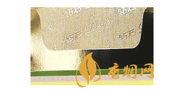 观察条盒。真品条盒开启处有颜色明快、层次分明的封口花专用防伪标签。该标签“荷花”文字采用专色金印刷,图案采用精细钞线技术、蝶影光变技术以及精细缩微文字印刷技术,变换不同角度观察会看到不同颜色,通过10倍以上放大镜可看到缩微文字。